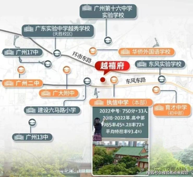 对口摇号8所省一级初中,包括执信中学、二中广大附中、第二中学、十六中学、育才中学、华侨外国语学校 。