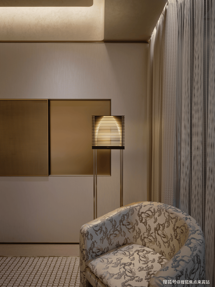 金属、织绣、石材具有不同属性,融合于室内空间的暧昧氛围中,悠扬回荡,和谐而优雅,温暖而关怀。