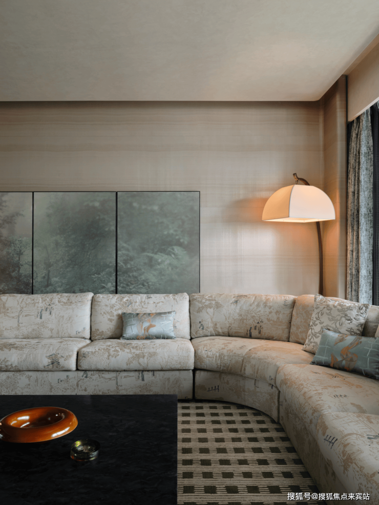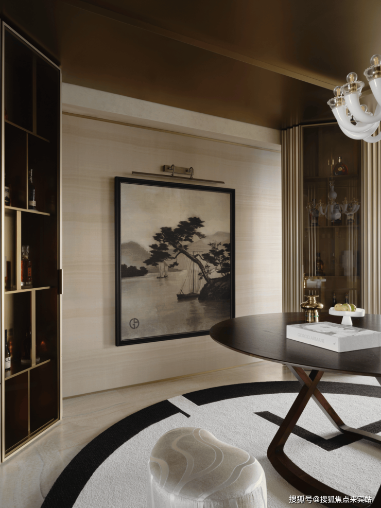 Armani Casa的设计将水墨刺绣融入到居室中,巧妙地布局,描绘着举杯谈笑、雅士风度的迎客之道。