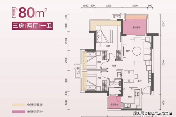 ↓户型鉴赏↓85㎡三房两卫