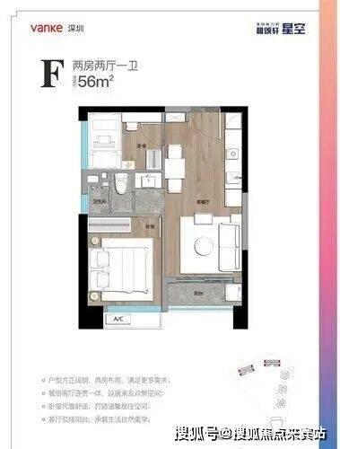 5𝟔㎡2房2厅总价179万起,参考租金6000-7000元