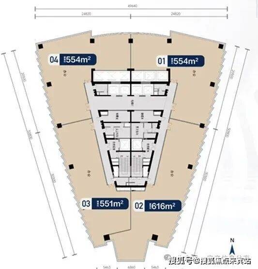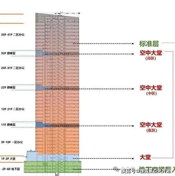 公寓部分,四单元46层,9梯34户;五单元47层,9梯32户,层高2.95米。