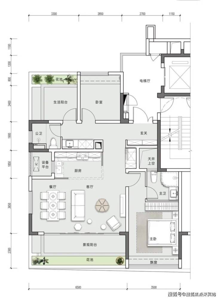 8.得房率:私家电梯厅私密独享,户内超高赠送,户户近100%得房率。