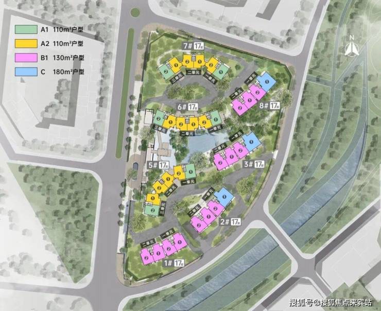 亮点:围合式布局,打造南北通透,户户观景,以中轴水系延伸景观设置泛会所入户大堂。游园式归家,双动线,保证南北两个组团独立,整体增强私密性,减少居住干扰。