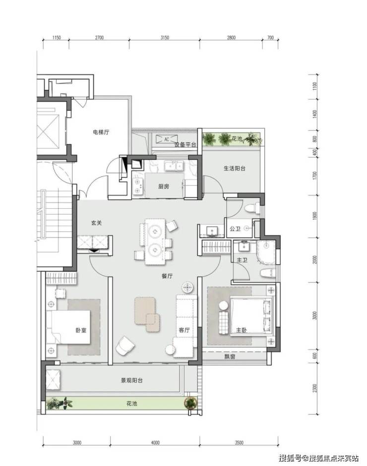约110㎡边户《独立宽厅 浪漫观景餐厅》两房两厅两卫