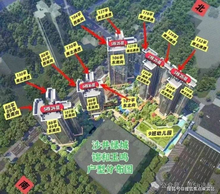 目前1栋和6栋的官方户型图已公布,户型包含88㎡竖厅3房2卫,104-106㎡竖厅4房2卫,107㎡为双龙抱珠4房2卫,127-130㎡通透4房2卫。