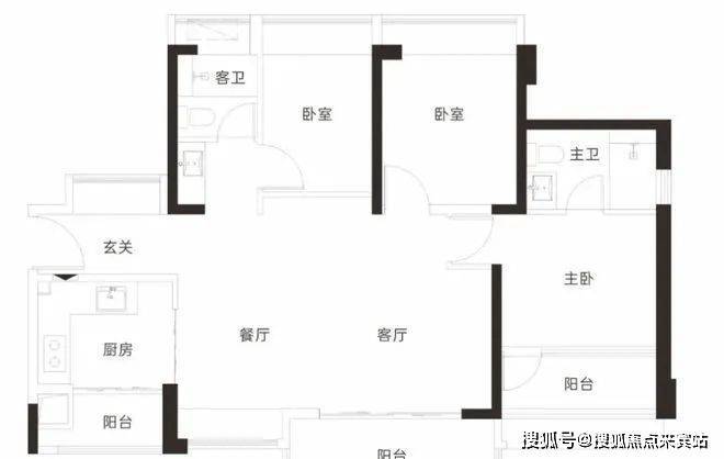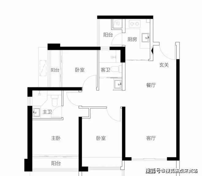 客厅朝西带阳台,2房朝西,1房朝南,1房朝北 单价区间:7.5-7.7万 总价区间:885万-910万