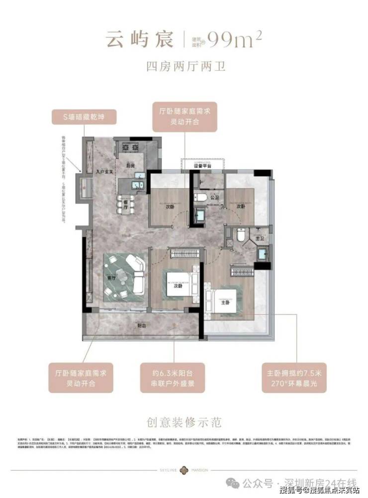 本宣传资料仅为项目信息公示用途,不构成《商品房买卖合同》的要约或承诺。宣传内容中涉及的项目规划、周边配套、政府规划、商业资源、教育资源、交通配套、户型面积等相关信息,最终均以政府相关部门审批文件及项目实际交付情况为准;