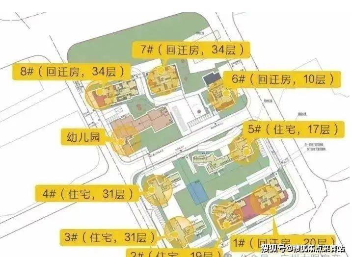 中间部分分为回迁房以及幼儿园