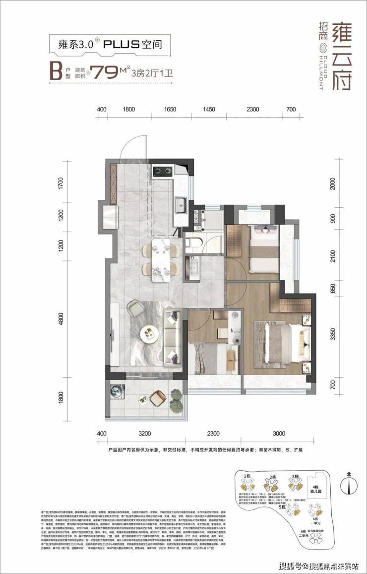 设计的是横厅南北通透格局,客餐厅一体化5.5米开间,3个卧室分别是3/2.4/2.4米的宽度,L型厨房,得房率:78.69%(不含赠送),阳台主朝西南及东南向。招商雍云府售楼处电话:400-832-9331