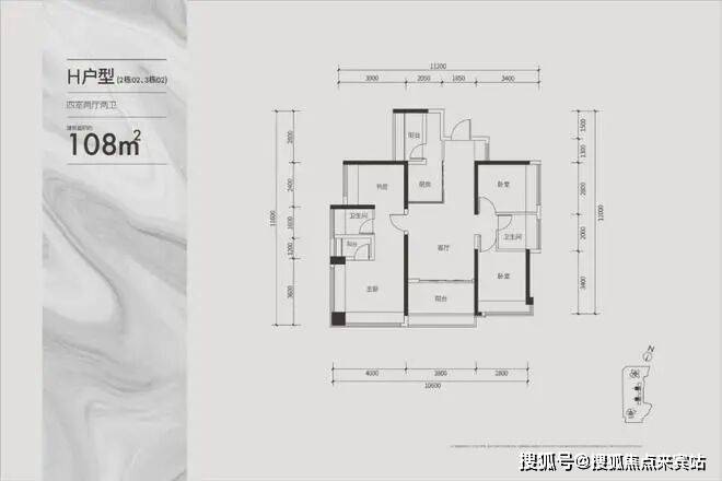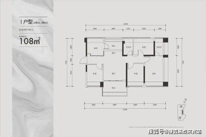 建面约108㎡通透四房户型