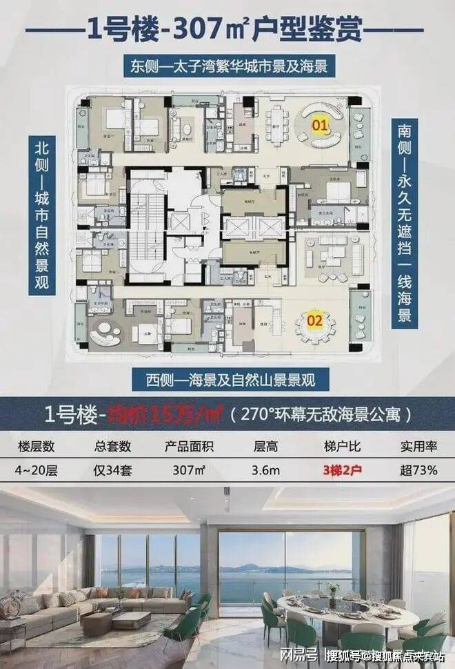 奢华体验:亲海阳台总面宽超12米,呈现无遮挡永久一线海景