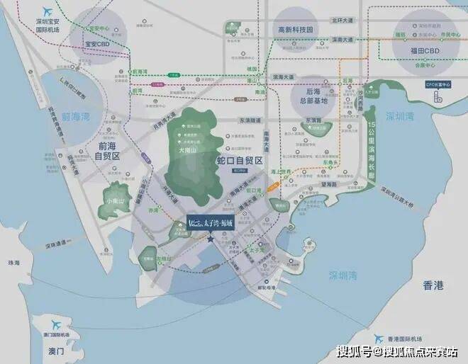 太子湾片区规划总建筑面积约170万㎡,总占地约69万㎡,汇集办公、居住、商业、艺术中心、酒店等多元业态。以“一湾三坊城中城”概念打造布局,在独一无二的太子湾滨海区,汲取山、海、城三大元素,构建高端“居住坊”、“商业坊”、“港务坊”。凭借独树一帜的规划与强大的枢纽功能,成就高端元素集萃纷呈的“城中之城”。