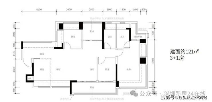 三、建面约121㎡户型:堪比旧规140+㎡户型