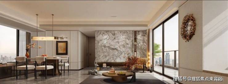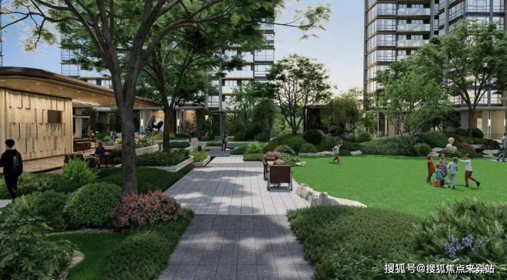 景观双轴,十大主题庭院:礼序前庭、琉光下沉式庭院、游泳池、社区会客厅、轻氧健身、亲子乐园、社区慢跑场等十大主题景观庭院。