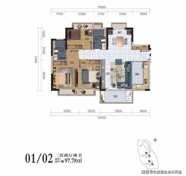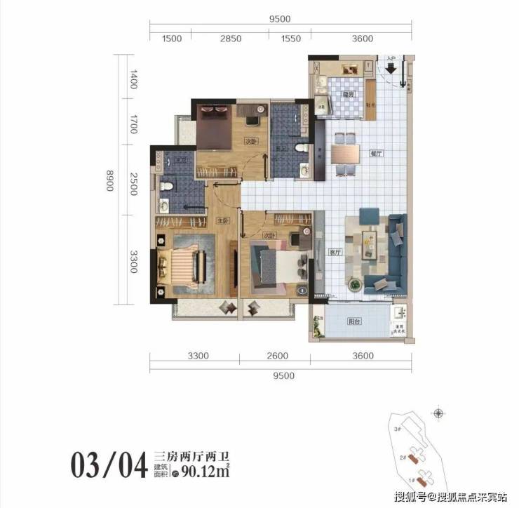 从90平往上的户型则都预留了双卫生间,且98平户型还打造成南北通透的双阳台,颇有市面上100平以上的格局。