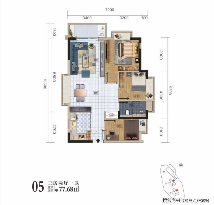 比如78平的面积就能做成三房,且完全没有过道,即便如此节省面积,还是“大方”的给每个卧室设计了飘窗,就连餐厅旁也加上了一道观景窗台。
