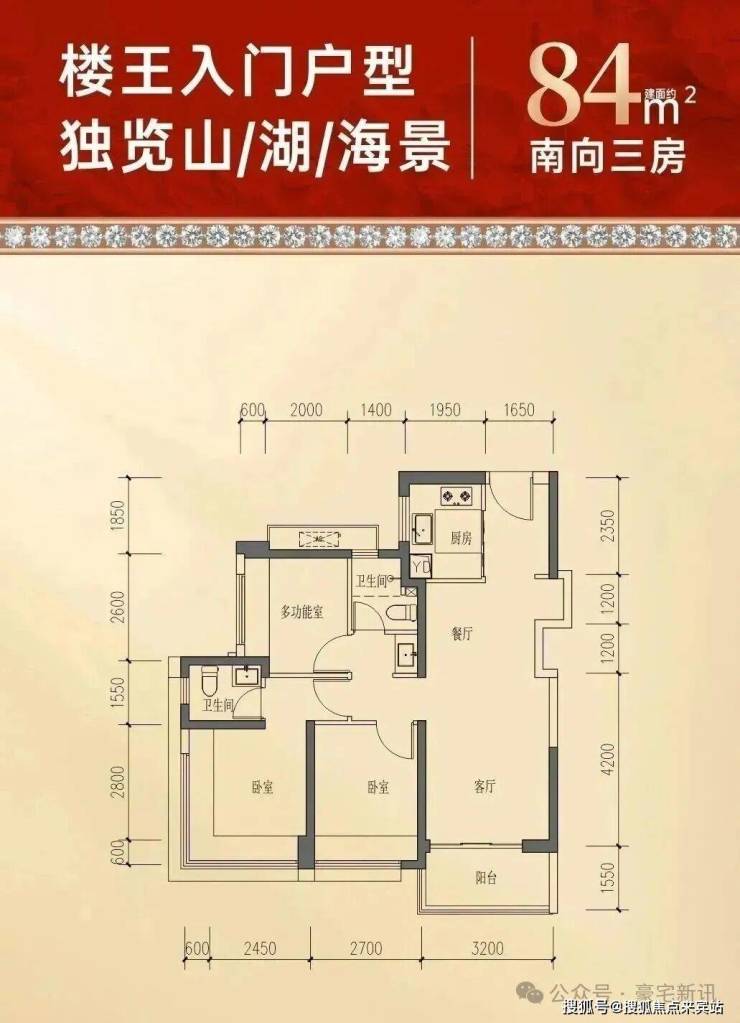 84㎡3房2卫:户型和之前推售的9栋1单元83㎡,10栋2单元84㎡户型一致。鸿荣源珈誉玖玺售楼处电话,经典竖厅户型,使用率约88%,客餐厅一体,公卫三分离,主卧双面采光,精致实用。