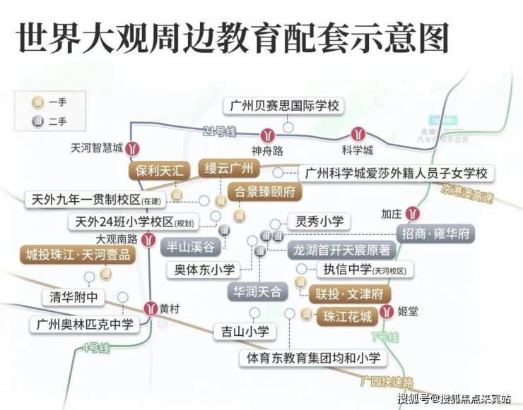 周边荟萃五大省级中学——清华附中、执信中学、天河外国语学校、广州中学、广州岭南中学(暂定名)。