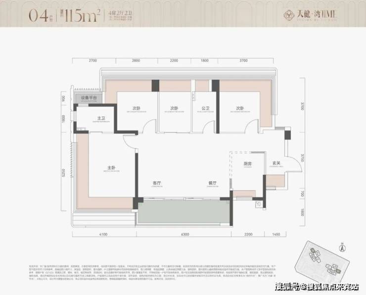 3. 115㎡四房两卫(南向/西南向,2梯5户,折后总价727-910万)