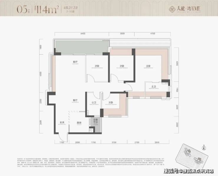2. 114㎡四房两卫(东北朝向,2梯5户,折后总价625-731万)