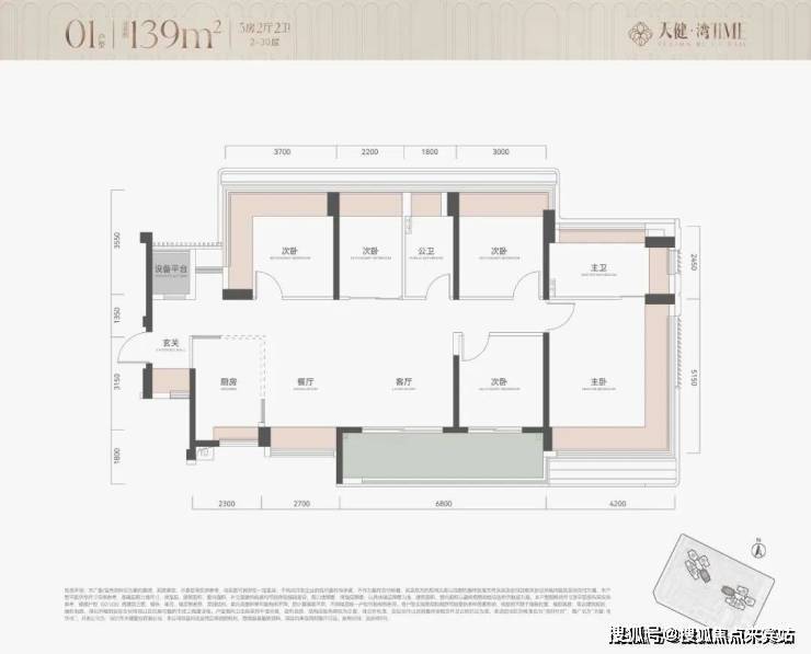 4. 139㎡五房两卫(南向/西南向,2梯5户,折后总价944-1339万)