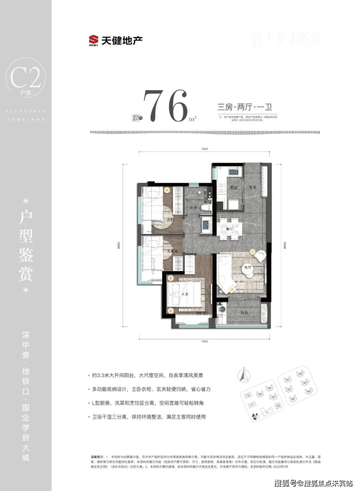 坪山石井,天健和悦府面积有75-76㎡的3房2厅1卫,89㎡的3房2厅2卫,99㎡的3房2厅2卫户型(可改4房),计划在2025年12月底前带精装修交房。加推现推出特价76平3房2厅,总价150万起.