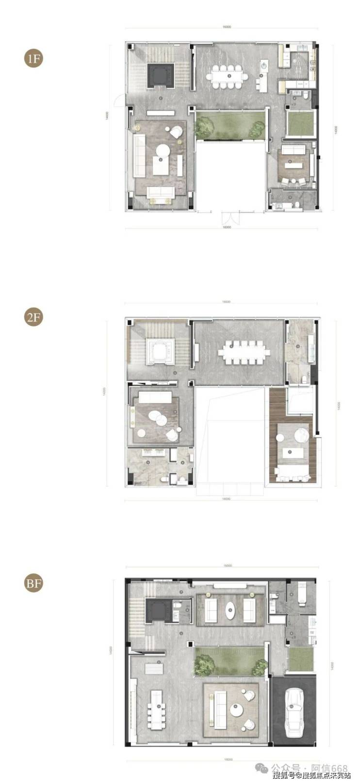 项目北区有82栋合院和独栋别墅,产品U字形合院式设计,一户一院,互不影响,方正明阔。玻璃幕墙+悬挂铝板+海南火山岩石材,打造极地艺术美学。