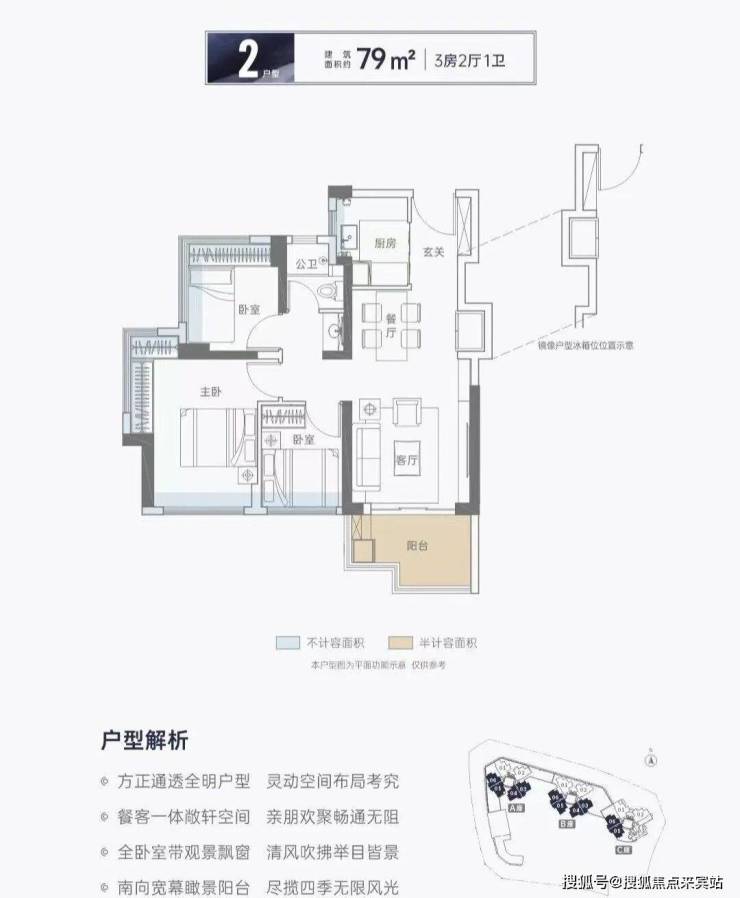 深圳少有的建面约89㎡3房2卫户型,客餐厅、主卧南北通透,前后无遮挡;