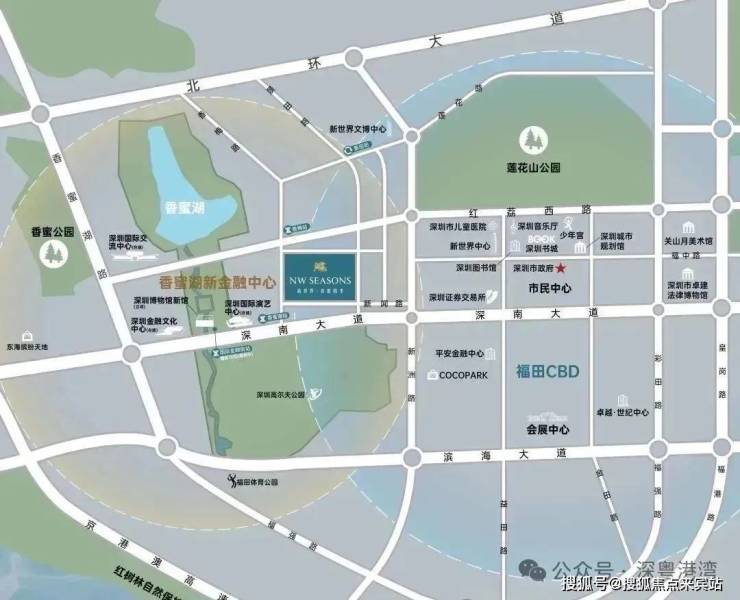 新世界香蜜四季家园位于福田区莲花街道,距离1号线香蜜湖站约500米。距离市民中心约1.4公里,南侧是深圳高尔夫俱乐部,地理位置非常优越。西临香梅路,东侧是合正名园。总占地面积约4.64万㎡,规划总建筑面积约54.35万㎡,分为两个地块开发,03-02-05地块规划为公寓产品的新世界香蜜国际公寓,03-02-06地块则是新世界香蜜四季家园。