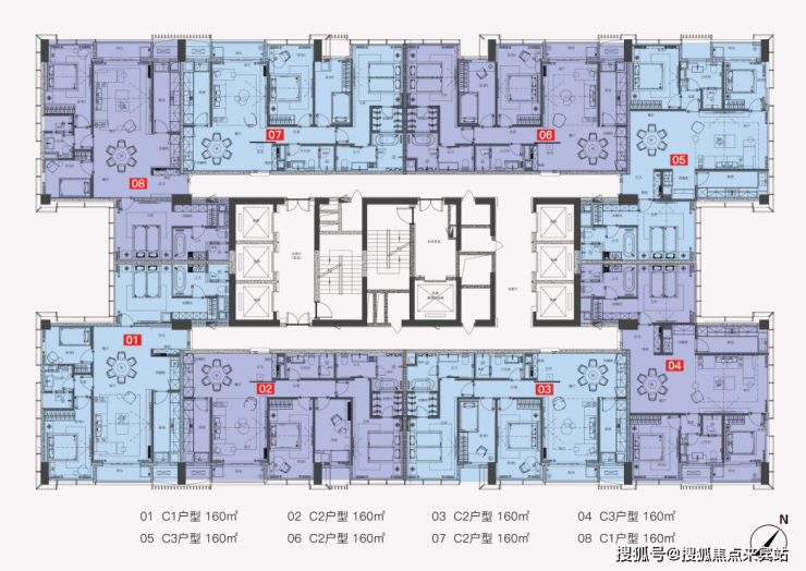 【梯户比】7-36F 7梯12户,37-41F 7梯8户