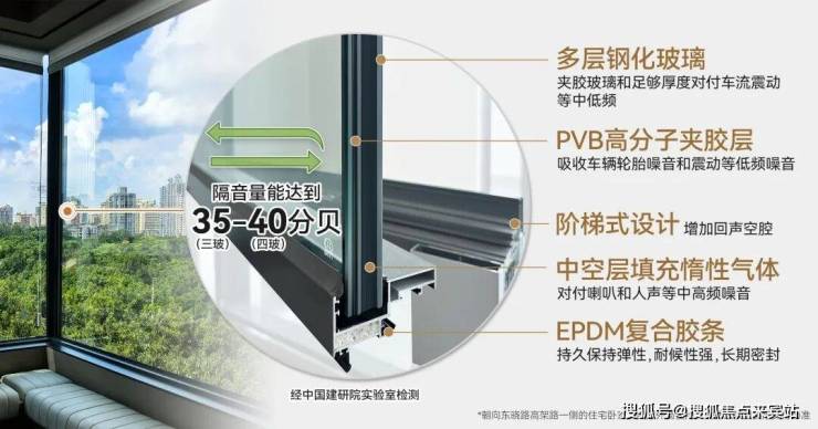 桂悦东晓在窗户之上,也替业主提前考虑到了,全屋配置2-4层中空玻璃(注:3-4层为中空夹胶玻璃)。