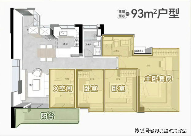 建面约93㎡四空间户型