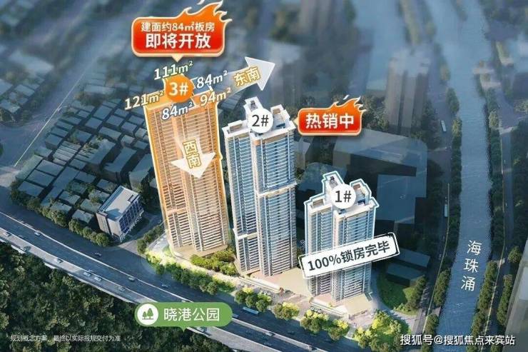 西南向是城市绿肺晓港公园,东面高层户型还能眺望珠江和广州塔。