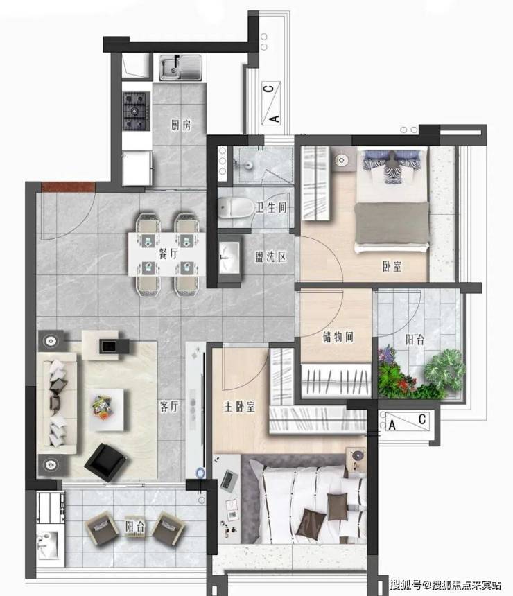 2栋02户型,约88㎡,3+1房2厅2卫