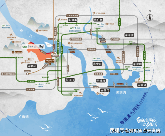 华侨城古劳水乡处于广佛肇都市圈和珠中江都市圈的核心区域,地处大湾区枢纽腹地,占尽承东启西区位优势,对接广佛都市圈、深港经济圈两大龙头,构成粤港澳大湾区“黄金三角地带”。