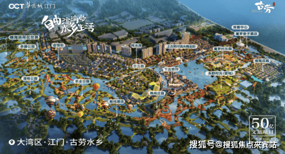 1古劳水乡位于广东省江门市鹤山市下的古劳镇,坐落于西江之上,立足项目水网纵横、鱼塘星罗的水乡特质和人文荟萃的古村生活,规划了五大小镇、十一重度假场景,集休閒度假、自然康养、星级酒店、商业配套为一体,配套设施完善,为都市家庭閒适旅居首选目的地。