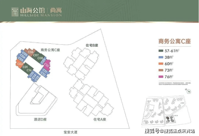 此次推出的产品推广名为京基智农山海尚寓,主推户型建面约38㎡单间、建面约57-76㎡1-2房现楼,层高3.15米,梯户比为4梯11户/3梯8户,物业管理公司为深圳市万科物业服务有限公司,管理费5.18元/㎡。公寓之前备案价5.4万,现在新备案价4.6万,折扣后均价3.9万,最低单价3万起,总价最便宜低至114万。本优惠到3月末。