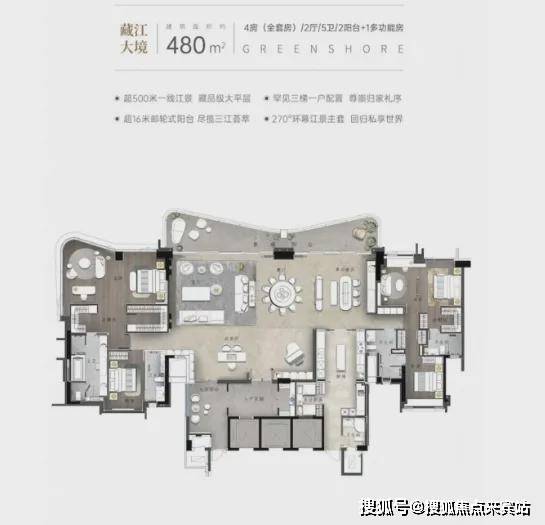 下叠面积为437㎡,花园面积区间约为357-797㎡,实用率229-338%;每个户型均为4+1房设计,最高可做到7房