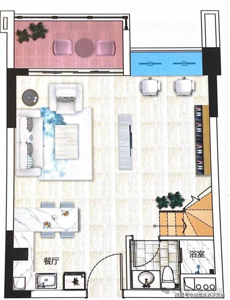 在售户型:53㎡复式三房、53㎡双钥匙(一开二)