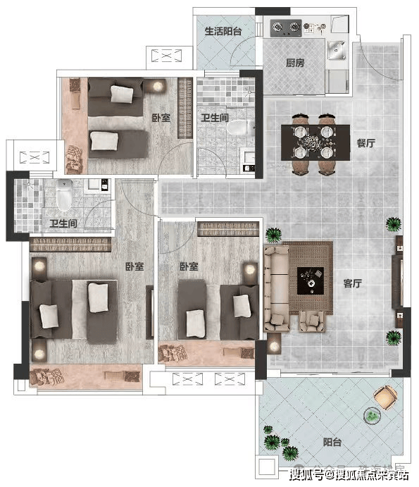 三开间朝南,卧室带宽面飘窗,空间自然延伸