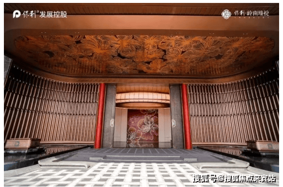 在北滘新城日益天际线化的今天,住宅项目的展示区往往成为衡量开发商诚意与审美的重要标尺。保利岭南瑧悦在展示区的打造上,并未单纯追求奢华堆砌,而是选择了一条更为深邃的文化复兴之路。项目入口处的门庭设计堪称宏大,长达一百二十米的迎宾界面,不仅赋予了归家仪式以庄重的尺度感,更在视觉上构建起一道连接城市与社区的宏伟屏障。这种大尺度的门头设计,在北滘区域的市场中显得尤为稀缺,它超越了传统小区大门的功能性定义,转而成为一种地标性的存在,让每一位归家的业主都能感受到尊崇与面子。