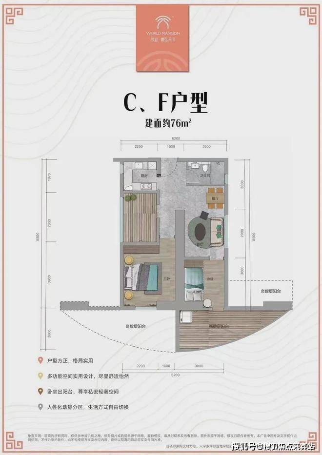面积:69-76㎡2-3房;交楼标准:精装