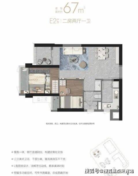 E2户型67㎡二房两厅一卫:最具性价比的选择,纵享龙华丰盛都市配套。