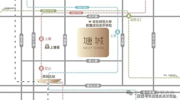 项目近达4号线上塘站、6号线上芬站、33号线龙胜站(在建中)三大地铁轨道,2站深圳北站,3站宝安国际机场。