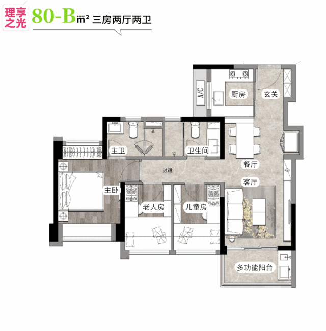 建面约80㎡户型图
