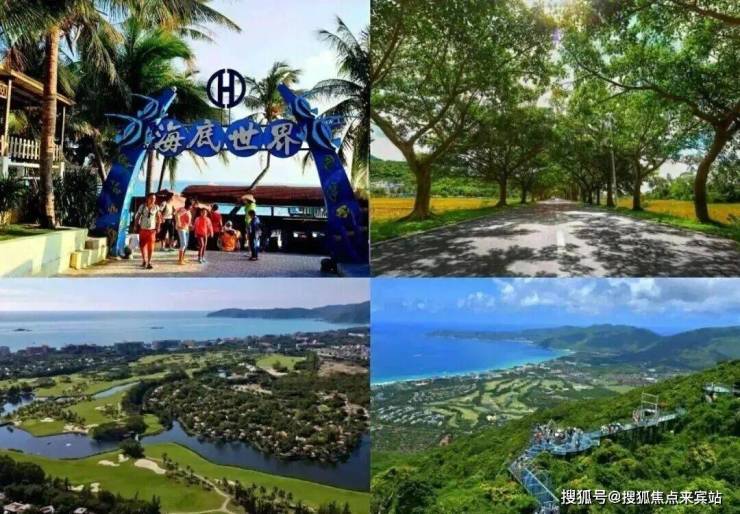 亚龙湾国际高尔夫球场、红峡谷高尔夫球场、 玫瑰谷、天堂热带雨林度假公园、最美公路太阳湾,红树林湿地保护区,亚龙湾海岸线等