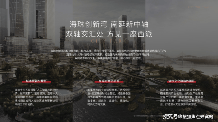 海珠创新湾将构建成展示珠江城市品牌、承启广州文化基因、集聚现代化科创要素的新城市轴线核心门户;沥滘百万方城市更新,打造未来南延线新中轴。
