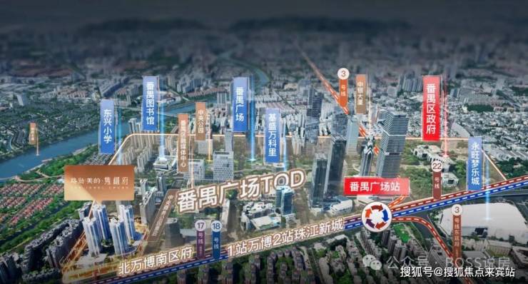 番禺广场预计2027年将以TOD模式、“地下商业+地上公园”的姿态全新亮相,国内建设体量最大地铁站将在此落成,汇集地铁3号/18号/22号/17号(规划)/3号线东延(在建),相当于“花城广场2.0”,为番禺打板“超前生活示范场域”,为广州新中轴再添全新坐标建筑。