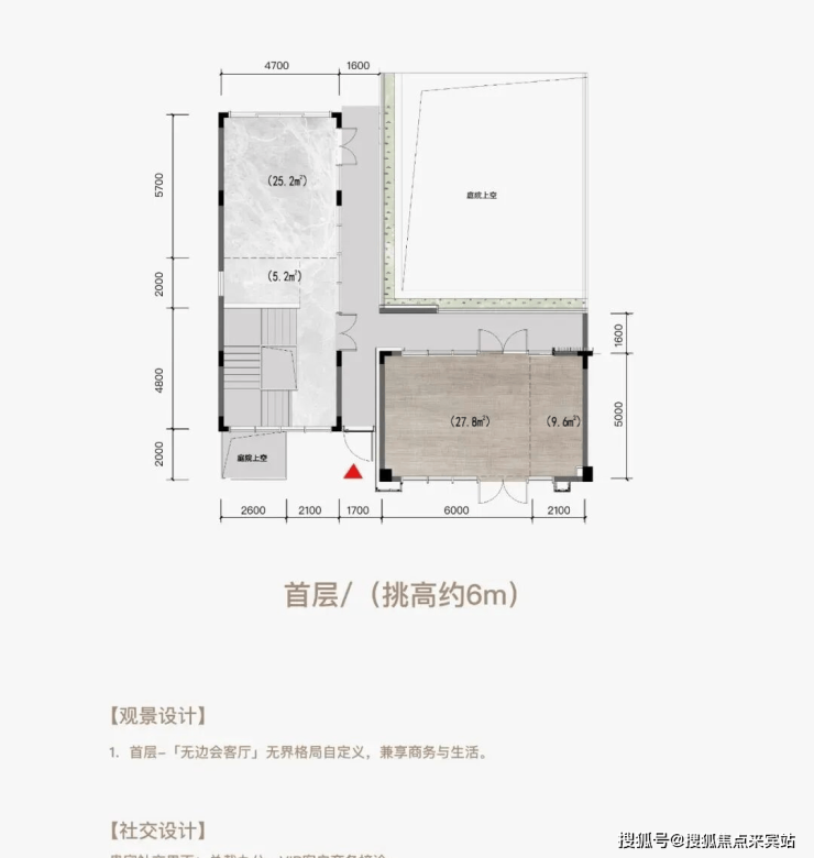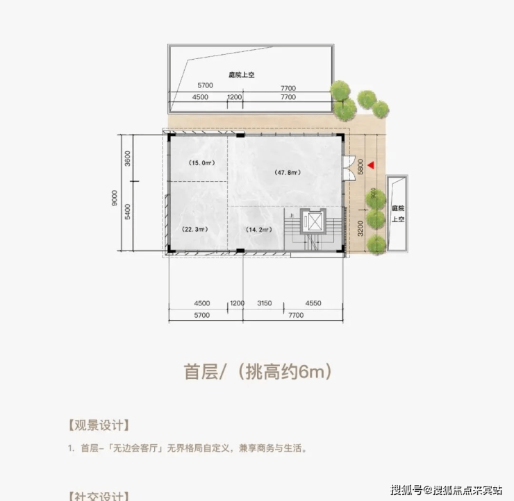 三层空间五个界面(顶层挑高约3m+首层挑高约6m+地下层挑高约6m)